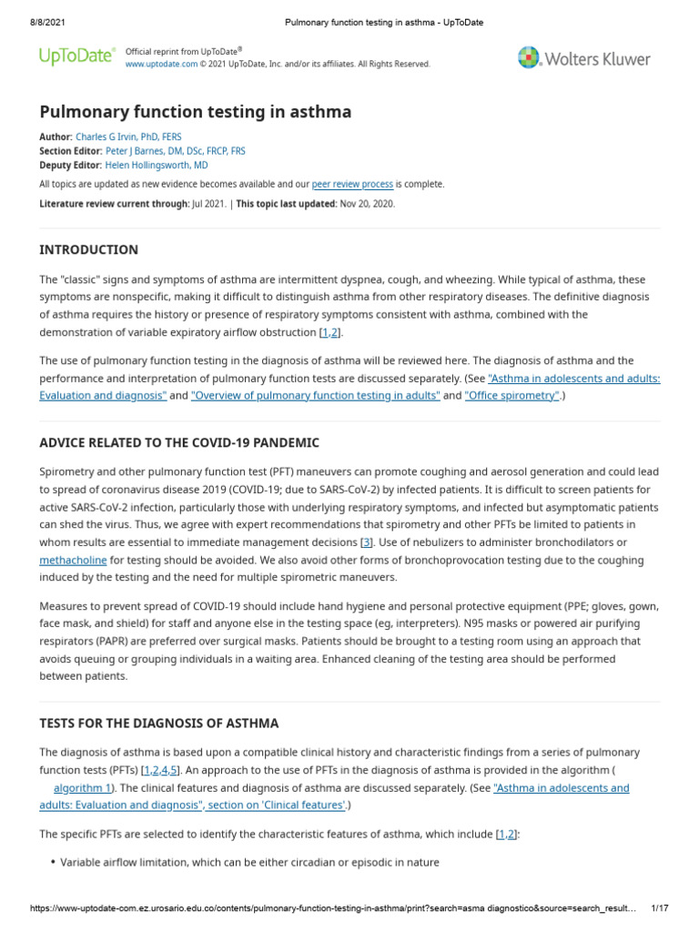Pulmonary Function Testing in Asthma UpToDate PDF Asthma Chronic Obstructive Pulmonary